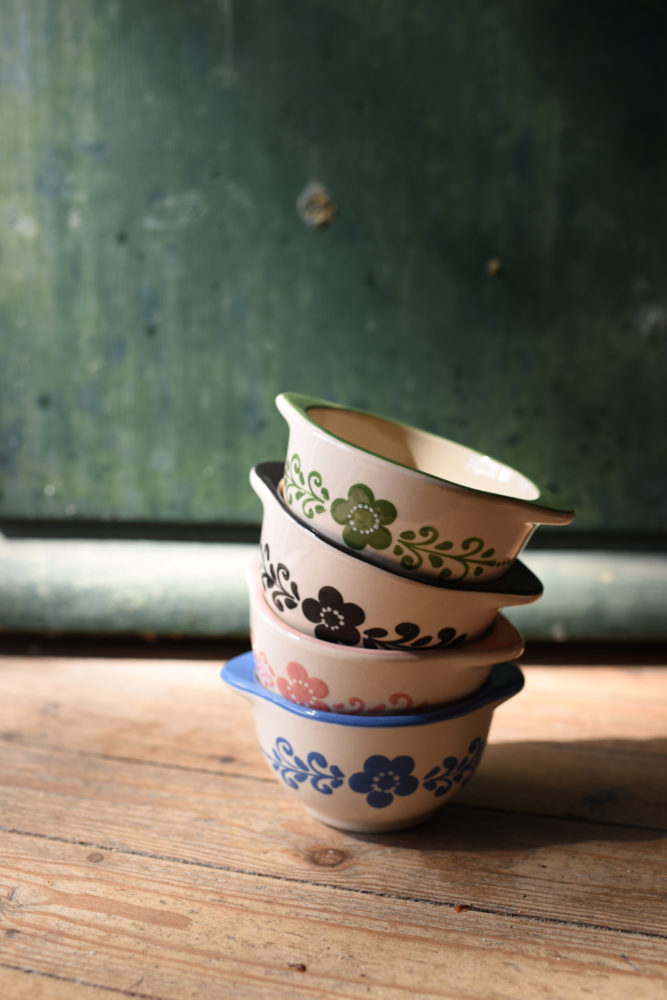 Il est également très utile à l’apéro pour présenter vos tomates cerises ou petits gâteaux! Il est un cadeau, un souvenir, un objet indispensable du quotidien, on en aura tous une utilité. Le petit déjeuner a aussi droit à une jolie table tendance. Ce bol couronne Fleurs va vous mettre de bonne humeur! Bol en Poterie culinaire. Cette poterie peut « tressaillir » par moment avec le temps ou la chaleur de l’eau: petits traits qui se forment dans la terre mais qui n’altèrent pas du tout la qualité du produit. C’est le charme de l’artisanat, Maison Roussot voulait retrouver les bols comme chez Grand-mère! Passe au lave-vaisselle et au micro-ondes mais ne pas en abuser, cela les abîment plus vite.